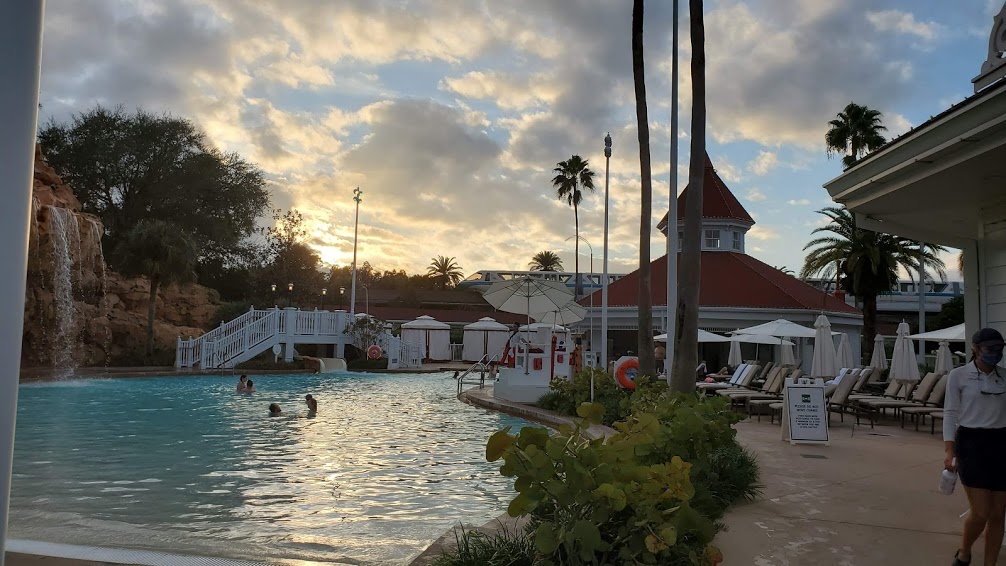 By the time we got back to the Grand Floridian, the weather cleared. So we headed down to the main pool.