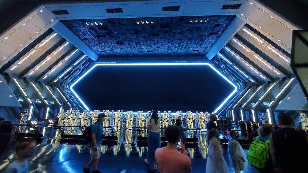 Now, while they let us in early, the park had not officially begun operating quite yet. Which meant we could hop in line for the park’s newest attraction without sacrificing our boarding group for Rise of the Resistance.