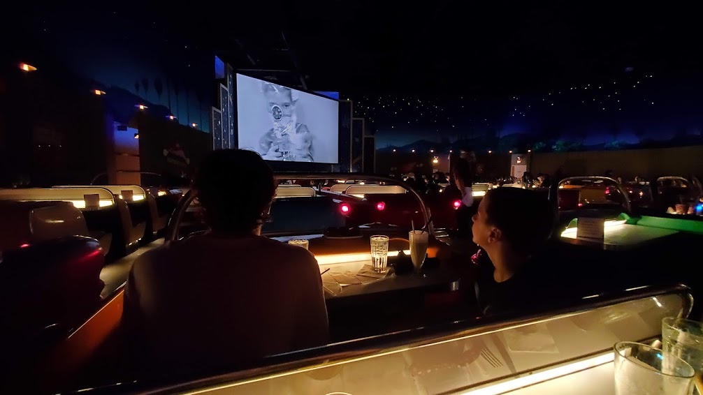 I love the whole feel of Sci-Fi. Not only are you under the stars, but you get to sit in these cars. Well, not like…real cars. Like fake cars. With tables and what not.