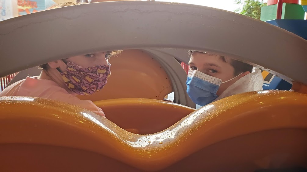 The posted time was once again off as there was basically no wait whatsoever to get on. We pretty much just walked through the queue. I was paired with Myles.