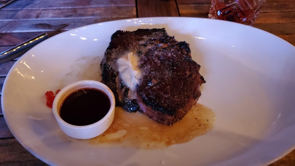 Now, ok. It was a good piece of meat. A VERY good piece of meat. But. I ordered it medium rare and thing came out a little overdone. I decided to tough it out…like I said, it was still good…but it did hurt my opinion of it a little. Like I would still put my steak at Steakhouse 55 in Disneyland ahead of this guy.