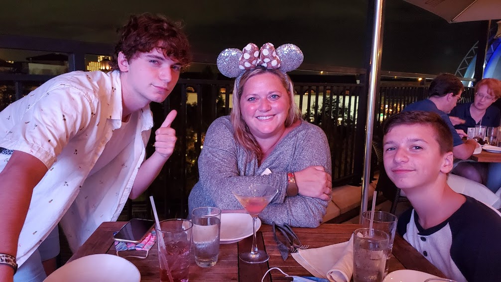 But, eventually, we had to head back up to the room to get ready for our last Disney dinner of the trip. Sad face. But I mean…dinner. So happy face.