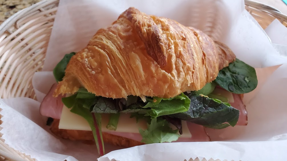 I ended up getting some kind of croissant sandwich thing. I remember it having mixed greens and Dijon in it. It was pretty good. I ordered one for Nickie as well.
