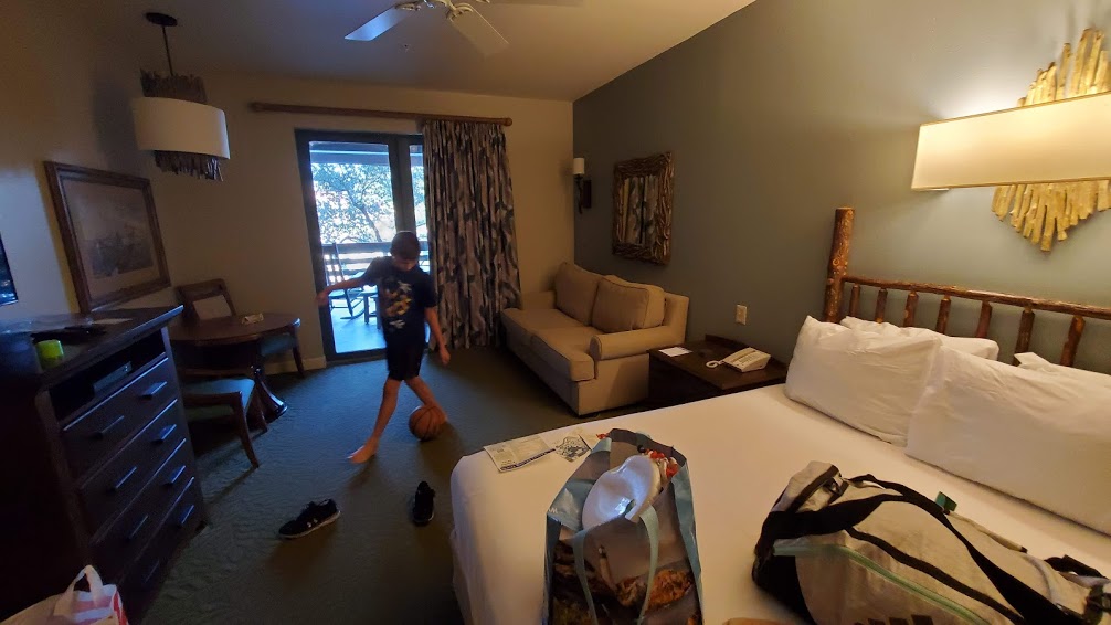 We checked in and made it up to our room. Which was very cozy and comfy. And it came with an Owen. Kicking a basketball. For some reason.