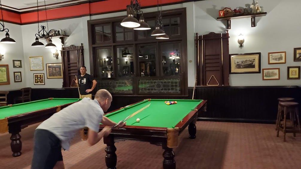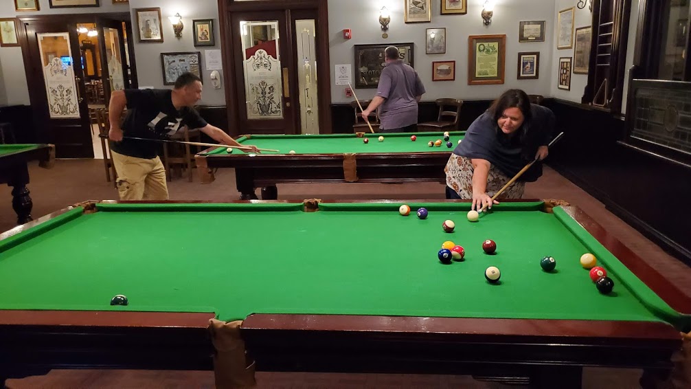 After dinner, the Falzones went to bed and the boys went to play some night basketball. The rest of us hit the pool room at The Cricketer’s.