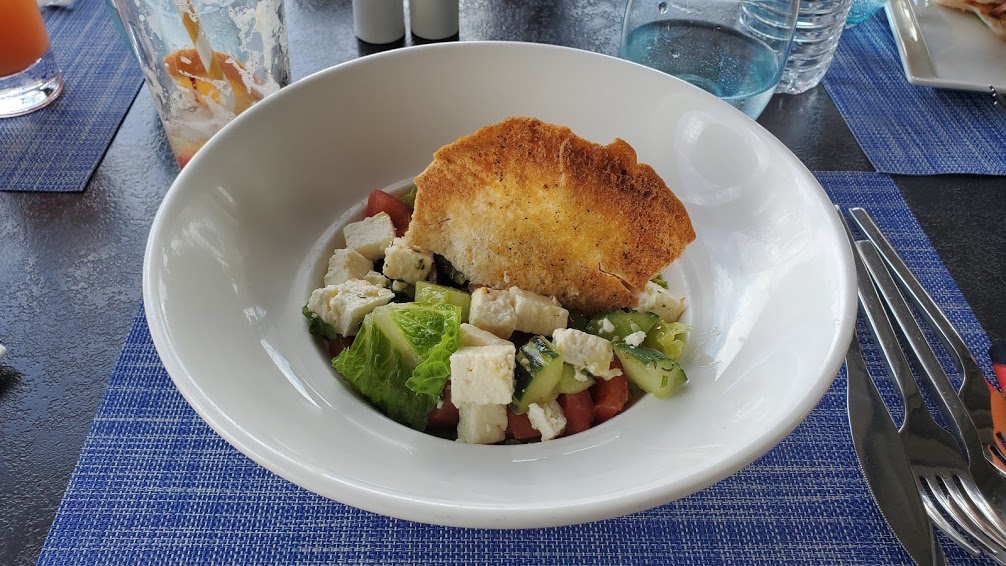 For my entrée (and Tony ordered the same), I got…are you guys ready…what could possibly have been my favorite dish of the entire trip. Behold….the Saffron Fish Basket (Fried white fish in saffron batter, lemon tzatziki).