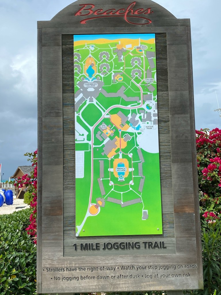 Day 4, once again, started earrrrly. Well, for me and Jeff at least. We met up at around 6:30am to head out for a run. And this time, we opted to run outside instead of on the treadmill. Before we left for the trip, I saw on a YouTube video that said there was an actual one mile running trail and there was a sign showing the route somewhere on property.