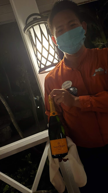 Nickie and Larissa continued their trend of finding ways to spend money at an all-inclusive and ordered up a bottle of Veuve Clicquot.