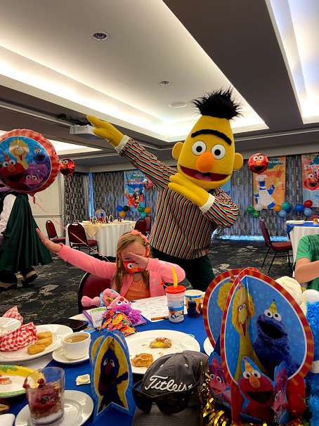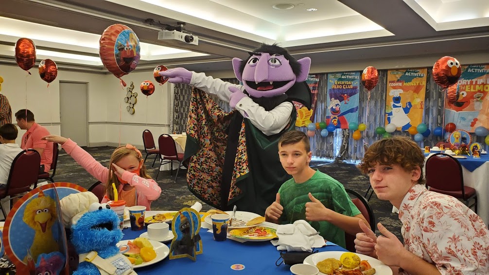 I think the rotation changes with each breakfast since we had a different line-up last time, but yeah this time we had Bert, Elmo, Cookie Monster, Zoe, Oscar, and Count Von Count joining us for breakfast today.