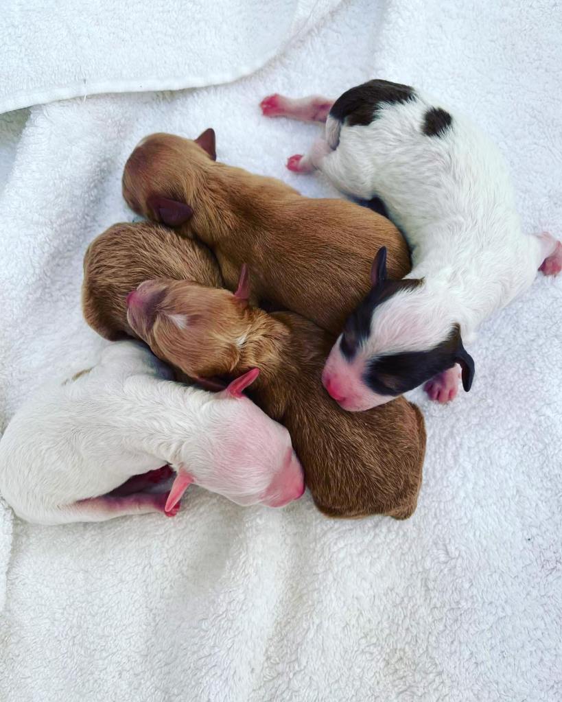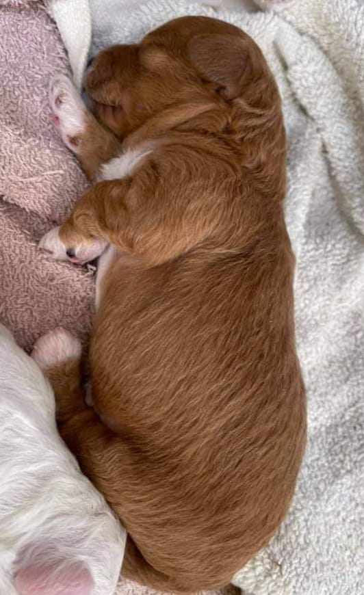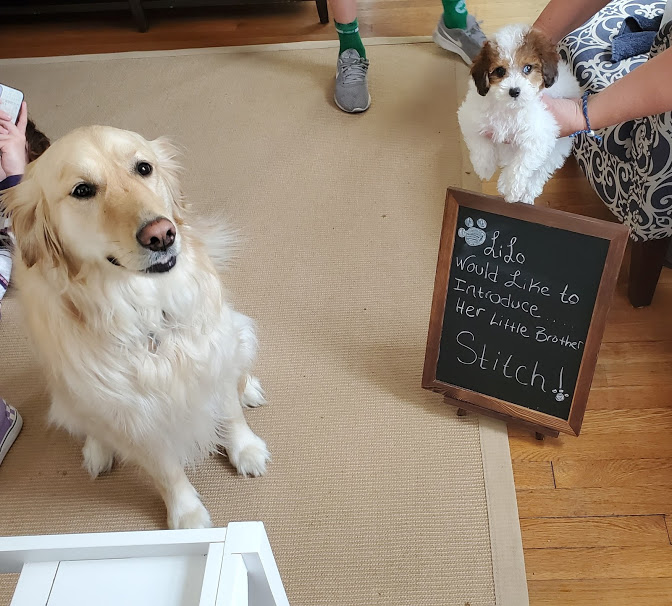 Stitch was born into a litter of 5 on February 18, 2021. February 18th also happens to be Myles’s birthday as well. And actually the 19th was our other Golden Retriever’s, Daisy’s, birthday.