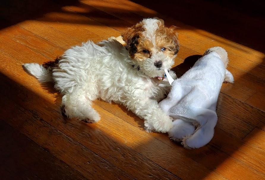 That’s on account of him being a Micro Mini Double Doodle. Yeah, a pretty long name for a pretty tiny pup. But he is part Golden Doodle and part Aussie Doodle. I think. I don’t know. I feel like he’s kind of made up.