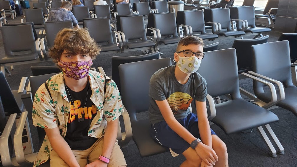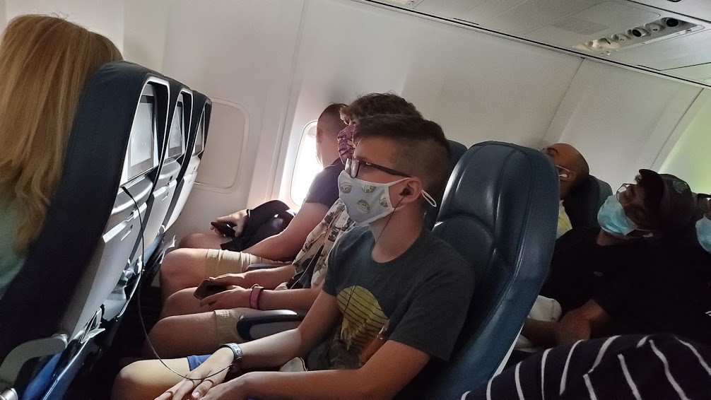 When Nickie booked these tickets, she booked only windows and aisles for the four of us. Same row, all with one seat in between them. And she did it because then, middle seats weren’t really being sold. But damn COVID and it’s whole starting to go away thing, this was a full flight. Thankfully some generous souls were ok with moving from the middle seat to the window seat.