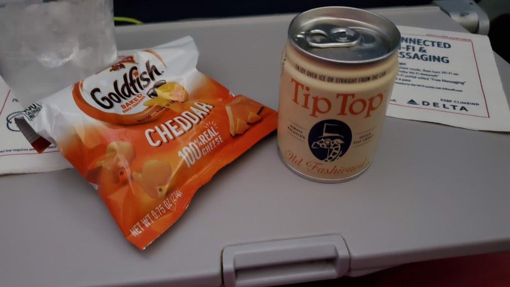 I saw on the Delta menu they had these Tip Top canned cocktail things and one of them was an Old-Fashioned. So I mean, of course I had to try one. You’ll be seeing A LOT of Old-Fashioneds on this trip.