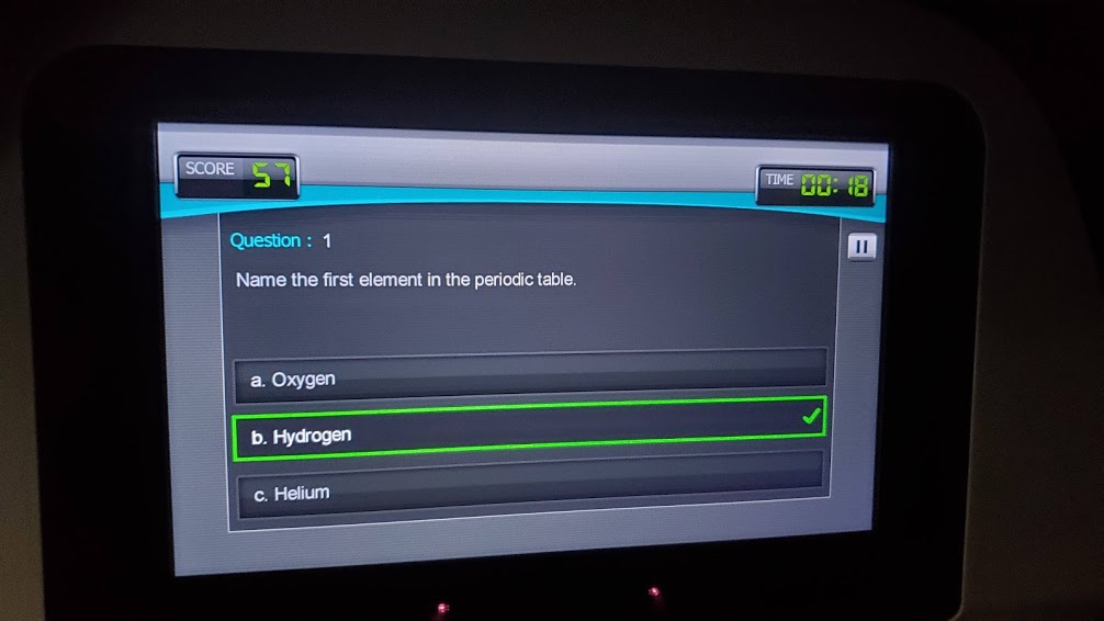 Also, we did find a trivia game where seats could play against one another. So I played Owen in a couple quick games as we were making our descent. Dude is a formidable trivia opponent.