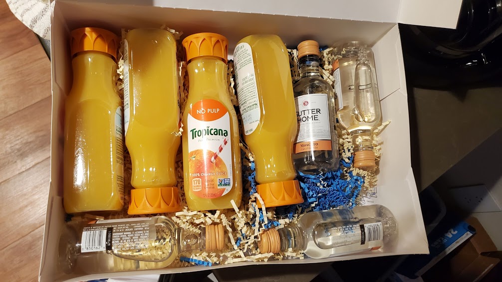Nickie also ordered a second Mimosa box, which came with bottles of orange juice and Moscato.