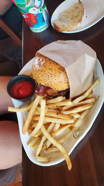 Geyser Point is seriously always an awesome meal. Every single thing we ate tonight was incredible and our waitress was so great. She not only taught us about the classist inner workings of duck society and brought us two burger halves rather than rely on us to clumsily cut a burger in half (which as we all know is impossible), but she was super friendly. We talked to her about Disney, her favorite restaurants and dishes on property, and a bunch of other stuff.