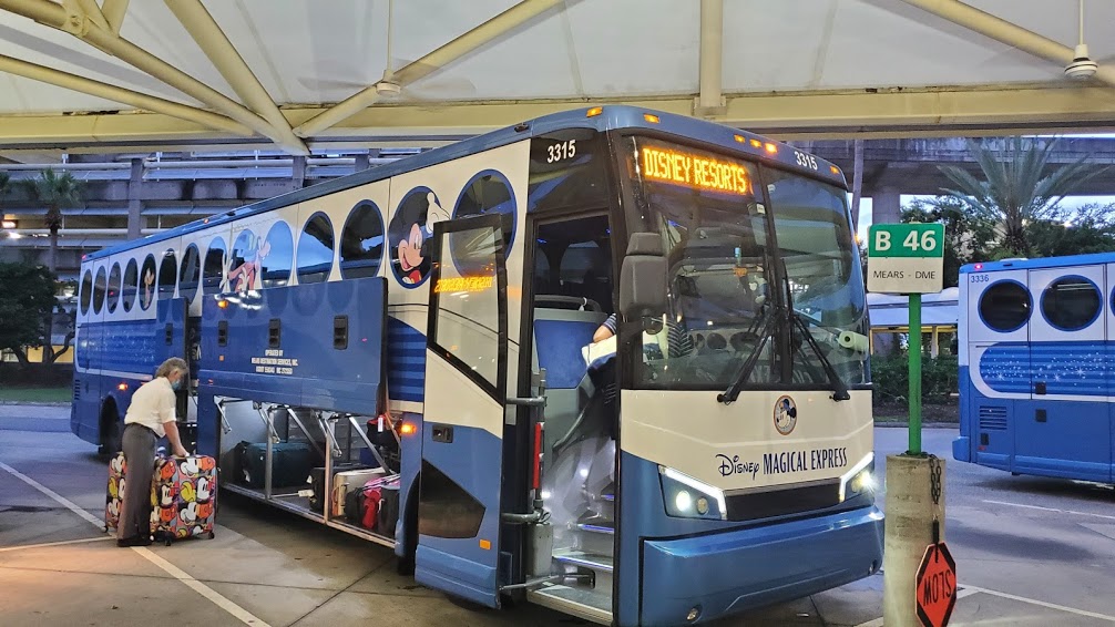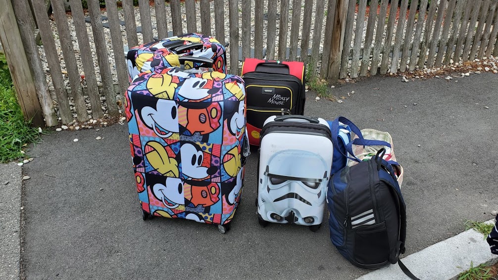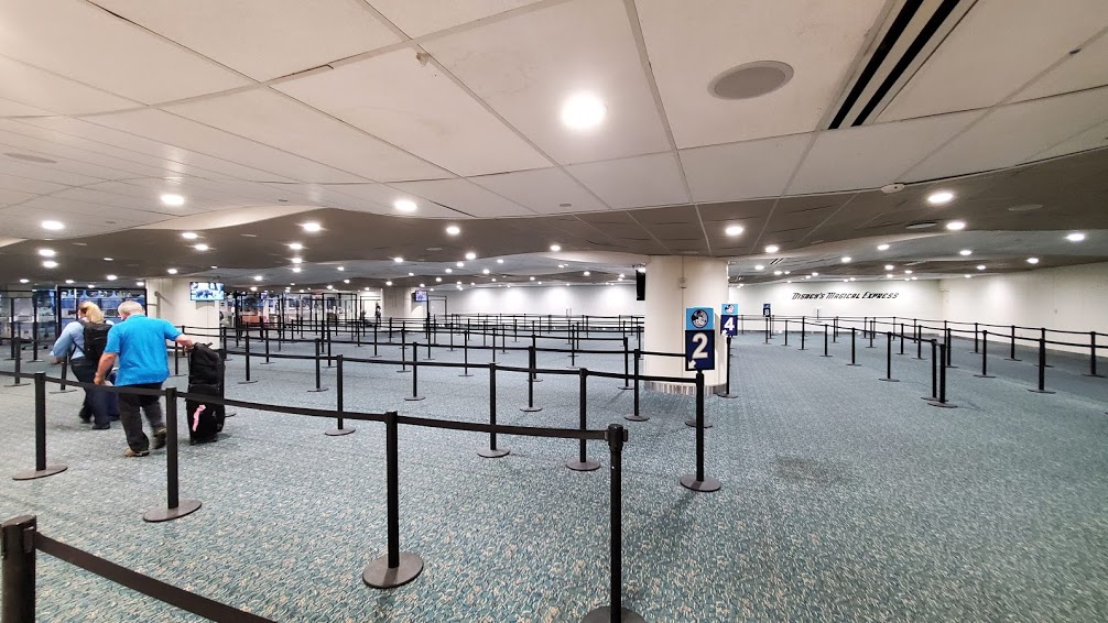 We landed at MCO a little before 8:00 and though Magical Express is currently running, we do currently have to grab our own bags at baggage claim so we made our way over there. And our bags came out super quick so we gathered them all and walked them over to the Magical Express line. Or I mean, lack thereof.