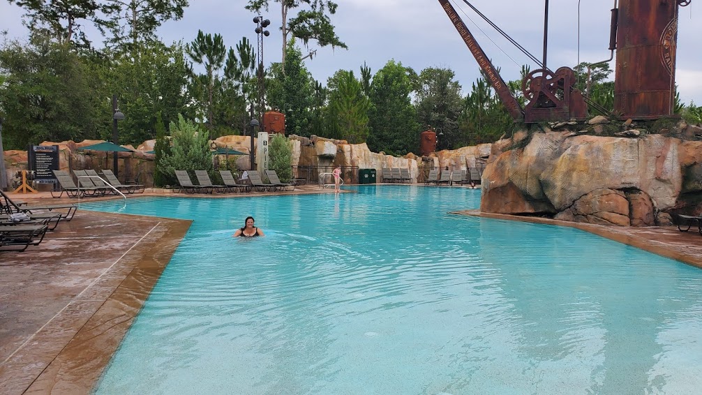 But we didn’t spend a ton of time there. One ride down the water slide (which may be the worst waterslide on Disney property) and that was about it. Seriously, you guys. That waterslide is junk. It’s insanely short and moves slow as crud. I know the Copper Springs pool has some awesome landscaping and I dig the double jacuzzi action there but that waterslide is terrible.