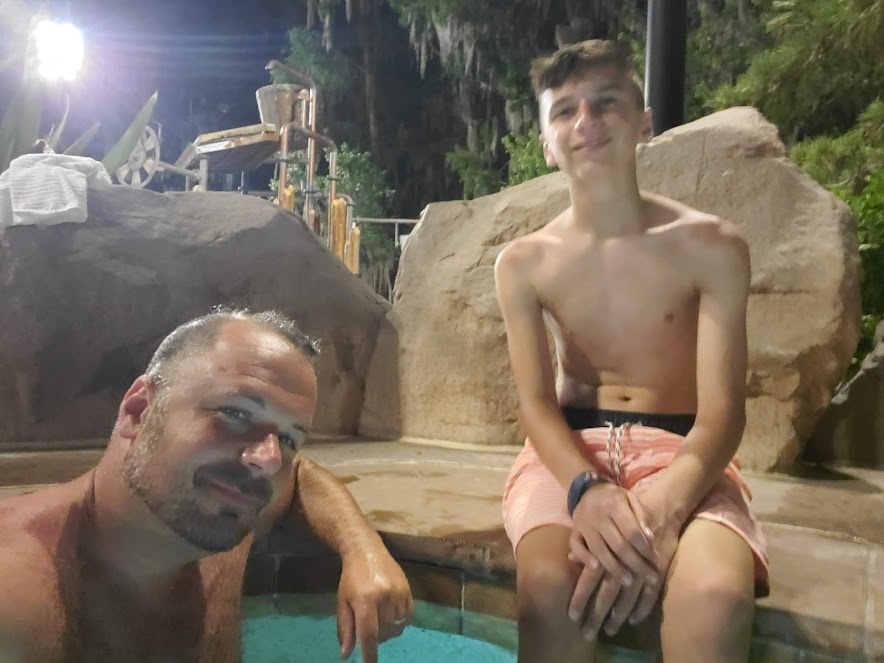 When we got back to Wilderness Lodge, it was still before 10PM and like I said, we still had our bathing suits on. So we went straight to the hot tub. As one does.