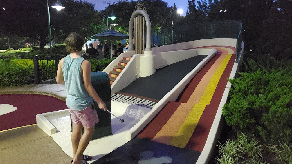 After dinner was finished, it was time to continue our “things we have never done in Walt Disney World.” While some of us have played miniature golf at Walt Disney World, none of us had done so at Fantasia Gardens.