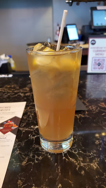 I say “pretty sure” because this doesn’t really look like a Bourbon Sweet Tea. I feel like Bourbon Sweet Teas usually come in a highball with a lemon. But I am like 90% sure that’s what we got.