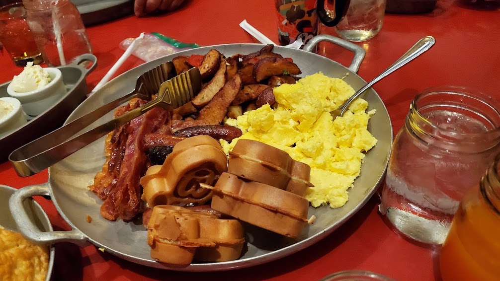 Everything was good stuff. I mean, pretty traditional breakfast offerings but Mickey waffles are a true elevation food. Like just by being associated with Mickey Waffles, those scrambled eggs immediately become the best scrambled eggs in the history of scrambled eggs.
