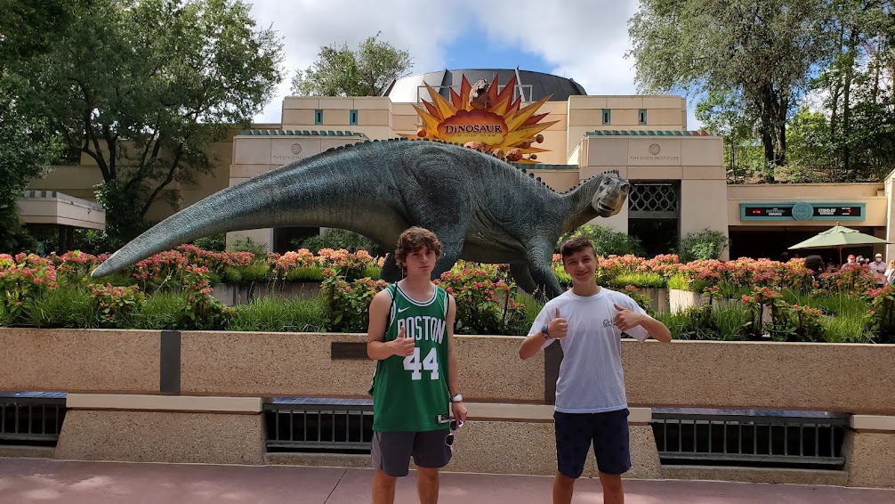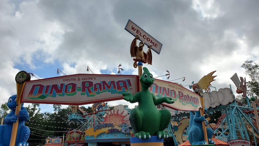 Since we were right near the entrance to Dinoland, the boys and I ran over to hop on DINOSAUR.