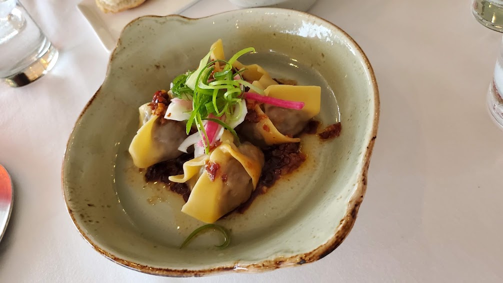 We also ordered up some of the Braised Beef Short Rib Wontons (Doenjang Miso-Cola-Onion Sauce, Crispy Garlic-Chili Oil, Radish, Pickled Lotus Root) to start.