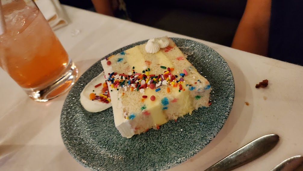 Being that we were celebrating Owen’s birthday tonight, our server brought out a piece of confetti cake. Which was pretty dang delicious.