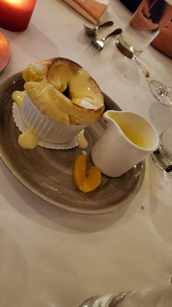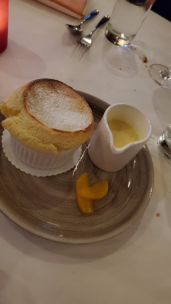 And for dessert, we also split the Grand Marnier souffle (with a Grand Marnier anglaise and macerated oranges.)