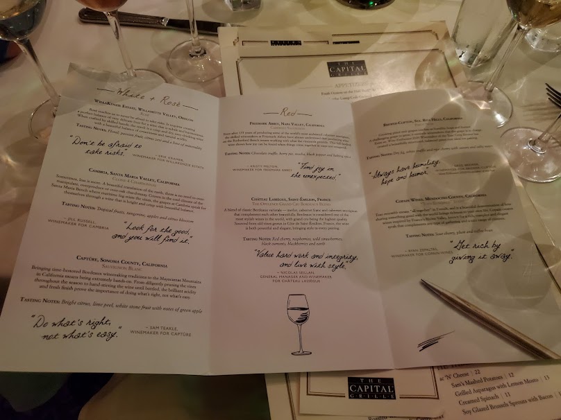 So yeah, Dinner. The dinner prix fixe price for Dine Out Boston at The Capital Grille is $38 for three courses and there are enhancements as well that can be added to plus up your meal. And I mean, yeah, of course we enhanced.