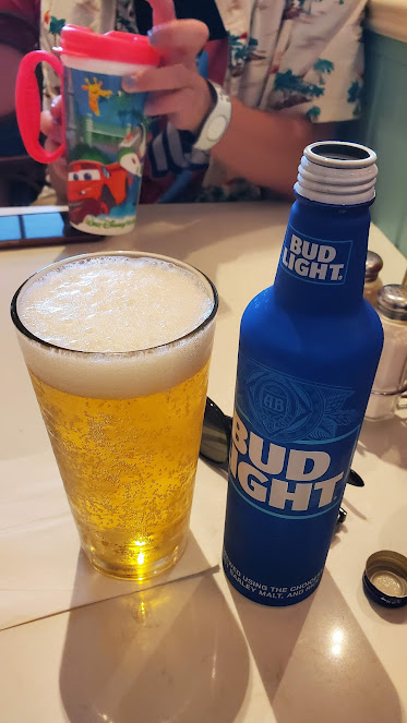 And being that we were in a table-service restaurant in the Magic Kingdom, our alcoholic beverage choices were limited to beer and wine. Which, I mean…yeah. No whiskey. But still. Bud Light.