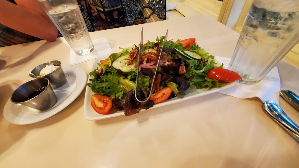 Our server also brought out a Seasonal Salad (Mixed Greens, Cucumber, Tomato, Carrot, Pickled Onion, Candied Pecans, and Red Pepper-Dijon Vinaigrette) for the table, which was rull good.