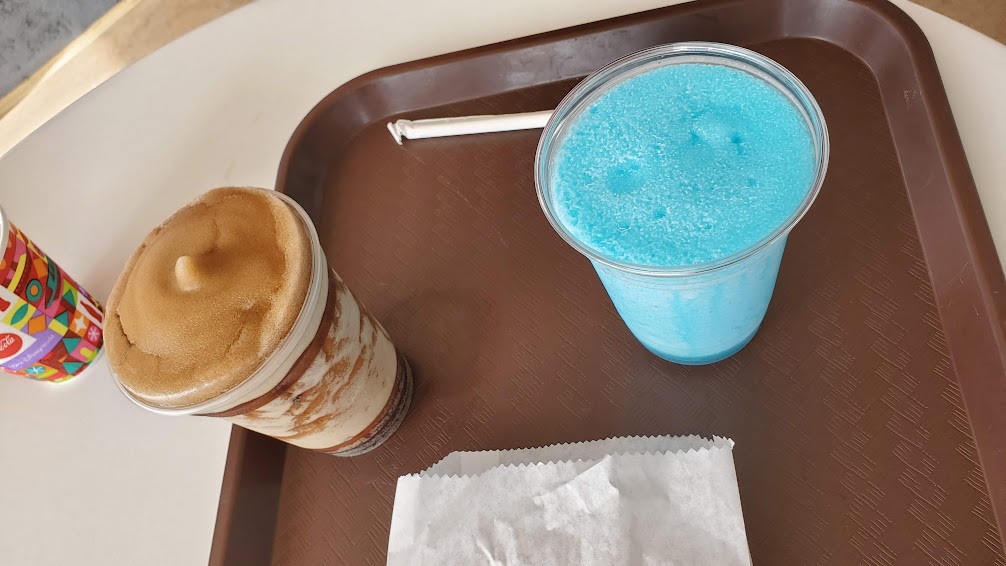 Myles also ordered a Frozen Coke and Owen got a Blue Raspberry Slushie.