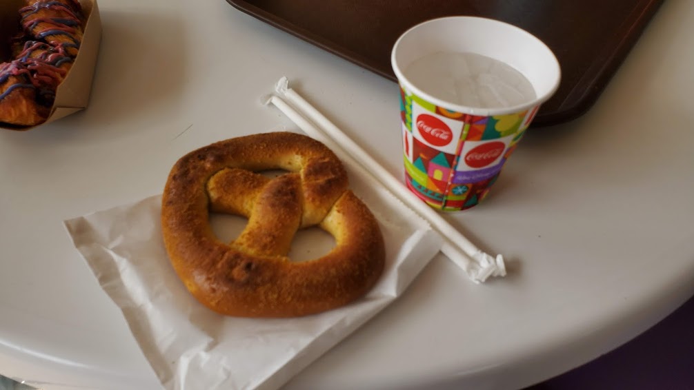 I got a Cream Cheese Warm Stuffed Pretzel and a water.