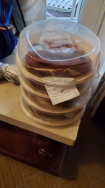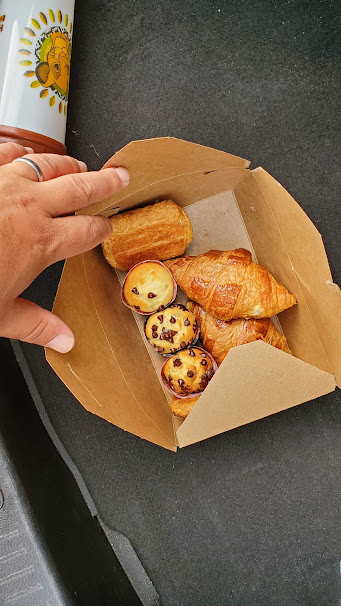 Croissants. Chocolate chip muffins. And seasonal Danish. I think this one was a maple Danish? You know, because maple is one of those flavors you just associate with summer. I remember those hot summer days of childhood when the maple man would come driving in his maple man truck up the street and we would all come running to get some of that sweet, refreshing maple syrup to beat the heat.