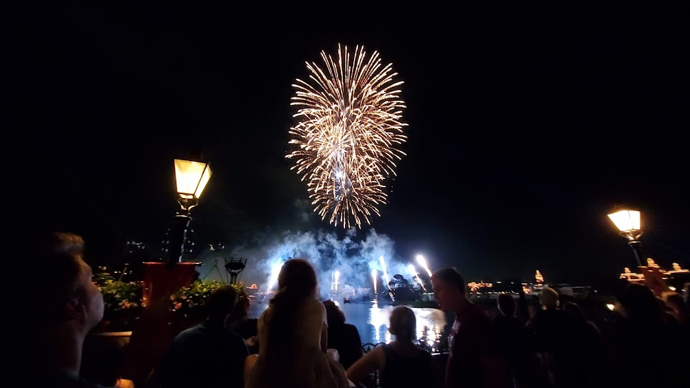 We found a spot to watch the fireworks over near the Canada Pavilion. Which worked out. Since that is also where the Popcorn in Canada cart is.