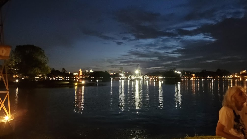 Now, as I mentioned in my last post, fireworks had just come back to Walt Disney World and we saw Happily Ever After at the Magic Kingdom the night before. Tonight, we wanted to catch the-kinda-underwhelming-but-all-we-have Epcot Forever fireworks over the lagoon. So back into World Showcase we went.
