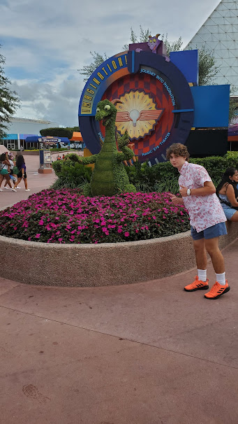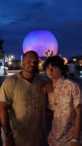 Myles and I also stopped to take advantage of the PhotoPass photographer positioned behind Spaceship Earth.