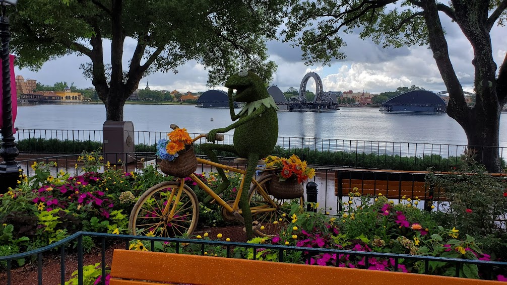 Our first planned stop was in Future World but being that we were entering via the International Gateway, we got to take in a little bit of Flower & Garden awesomeness on the way. Like, ugh, look at Kermit on his bike. Stop.