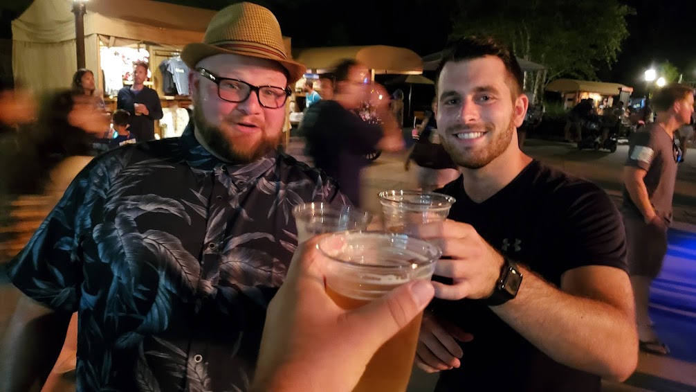 And as we were eating our popcorn, Myles spotted off setting up to watch the fireworks two familiar faces. Two Disney YouTubers we watch pretty regularly – Paging Mr. Morrow and Kyle Pallo – were setting up to record the fireworks just a little bit away. So we walked over to say hi to them and say thanks for all their great content.