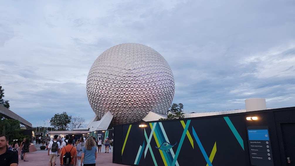 When we exited the ride, the sun had gone even further down and Spaceship Earth looked hella-pretty.