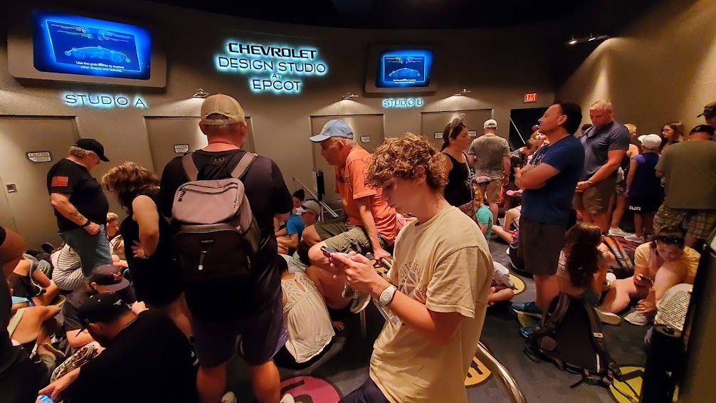 But yeah, like I mentioned – our first stop was in Future World. Specifically, we were looking to take a spin on Test Track. And like, yeah – bad weather is no bueno for Test Track. But the rain had kind of stopped at this point so we thought our chances were good.
