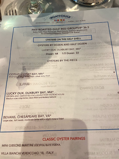 Since we were at the Boathouse, I had to start with some oysters on the half shell.