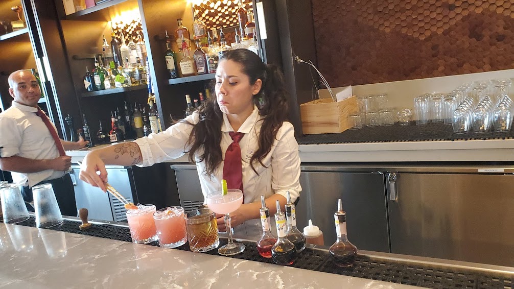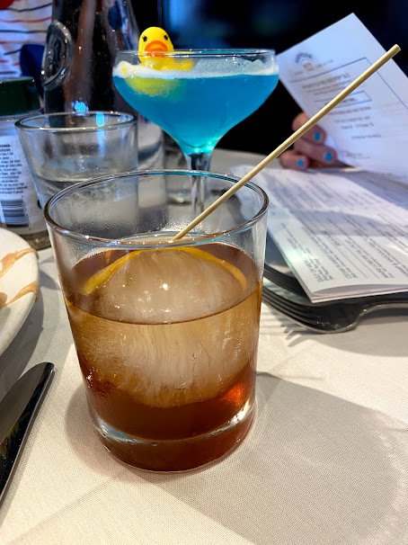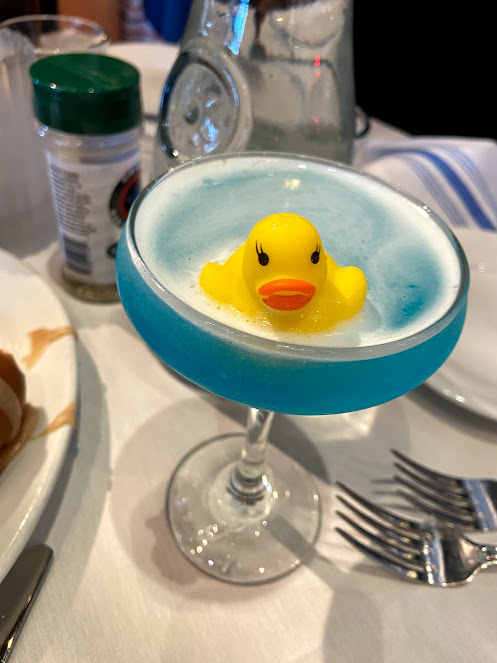 For her morning time alcohol infusion, Nickie ordered the IG-worthy Duck Duck Razz (Stoli Razz, Peach Schnapps, Blue Curacao, Lemon Juice, Simple Syrup).