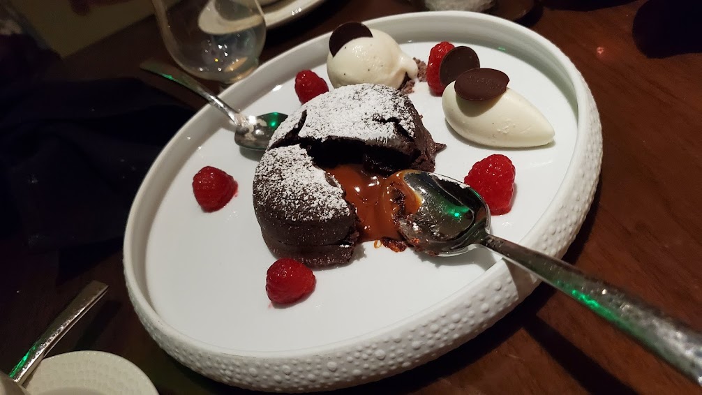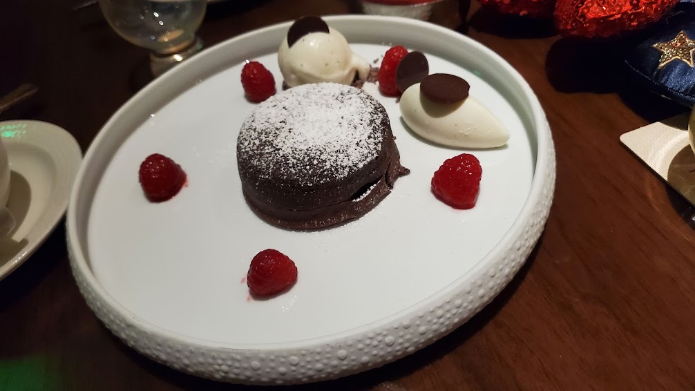 Multiple dishes of this thing were ordered and man, this is way up there in terms of desserts on Walt Disney World property. Served with Raspberries and Chantilly, this ain’t your normal lava cake situation here. While most of these types of cakes are filled with a warm chocolate center, this one is all warm caramel inside.