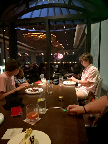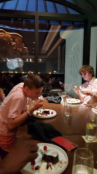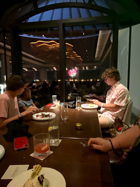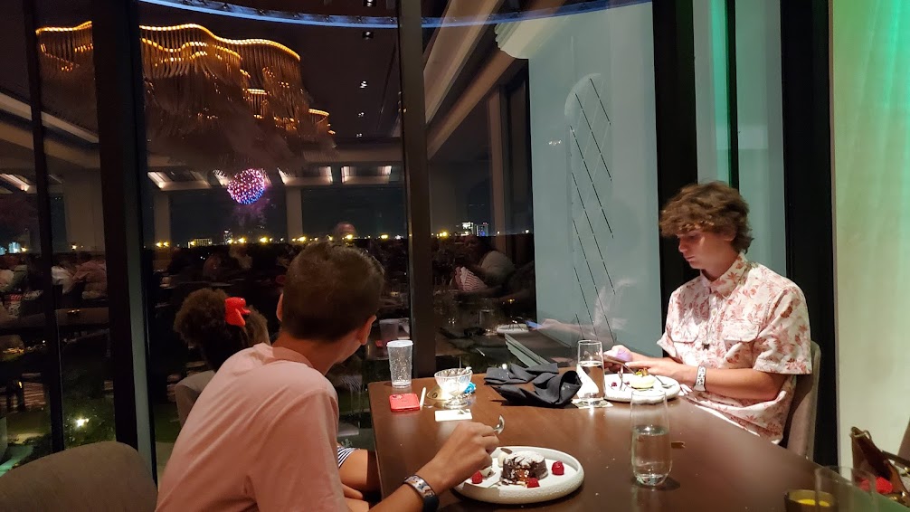 As we were eating dessert, we noticed some fireworks going off in the distance out the window.