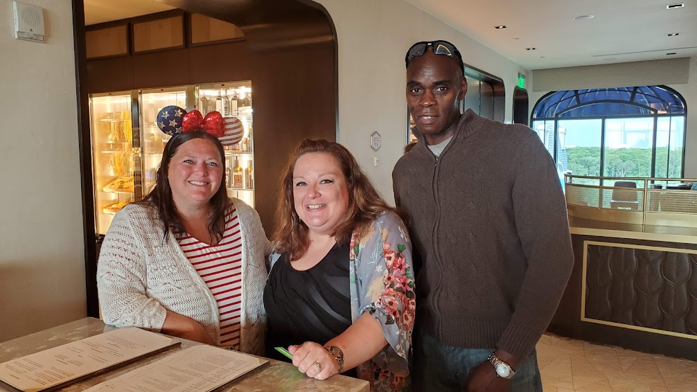 But as magical as that brunch was, our day was about to get even magicaler. Because as we were walking out of the restaurant, we spotted a couple of VERY familiar faces. I have mentioned before on this blog how much we watch Disney YouTubers as part of our trip planning and I mean, let’s be honest, even when we aren’t planning trips.