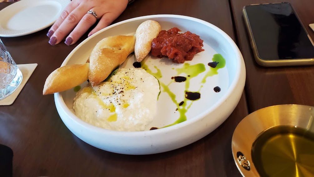 We started the meal off with a plate of the fresh, housemade Ricotta (with Tomato, Aged Balsamic, Cracked Pepper, Basil, and Epi.)