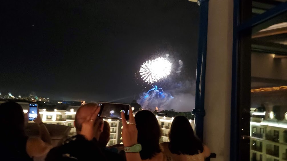 The show ended at around 9:30 but that was NOT the end of the fireworks for the night. The plan was to catch the Epcot Forever nighttime spectacular off the outside rooftop patio at Topolino’s, which was starting at around 10PM.